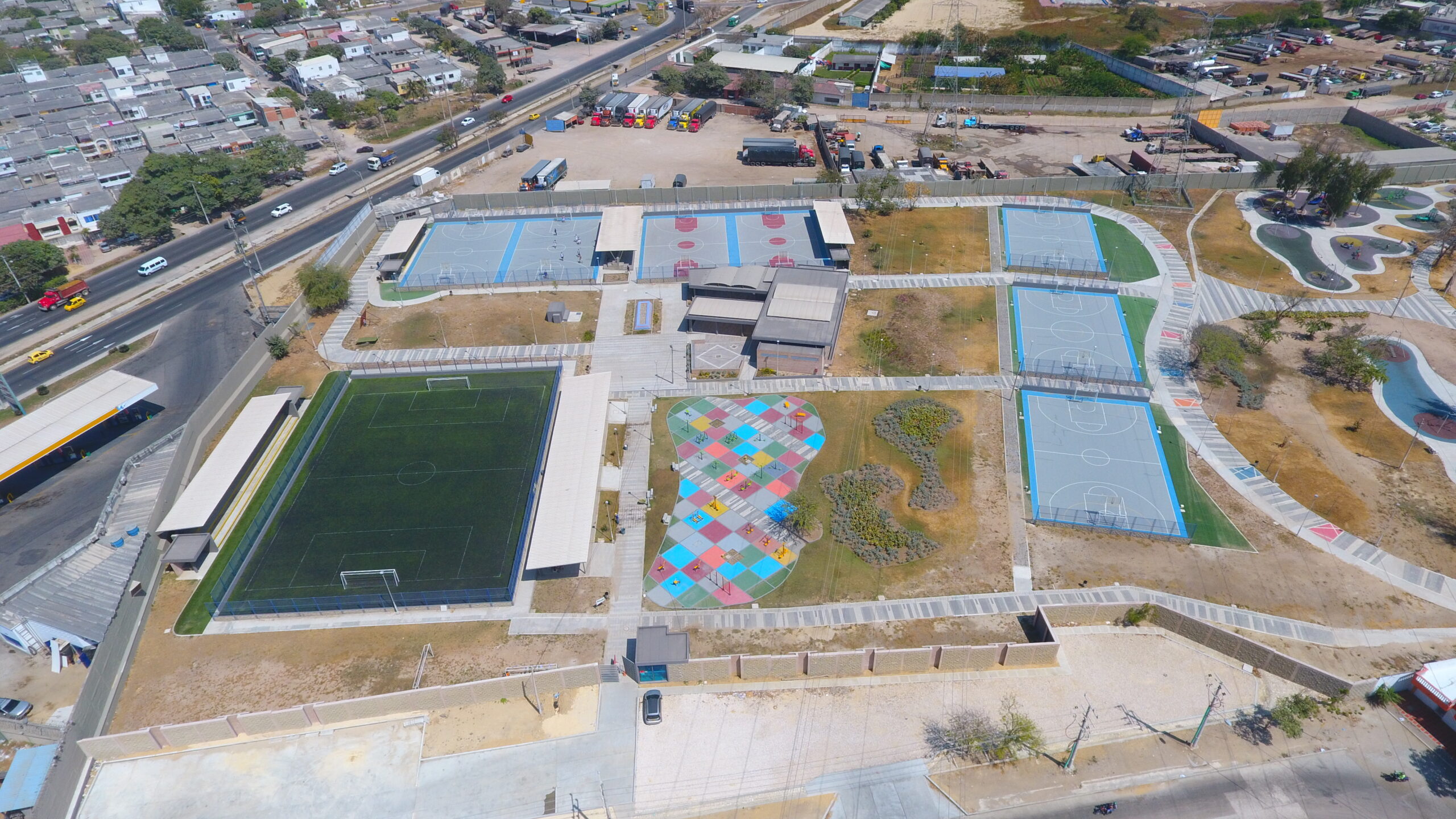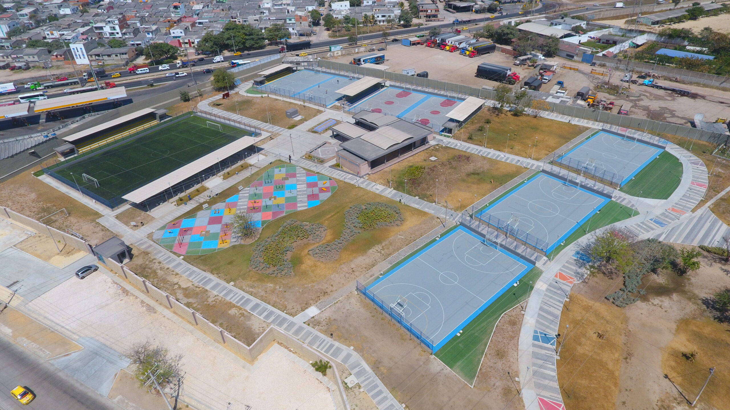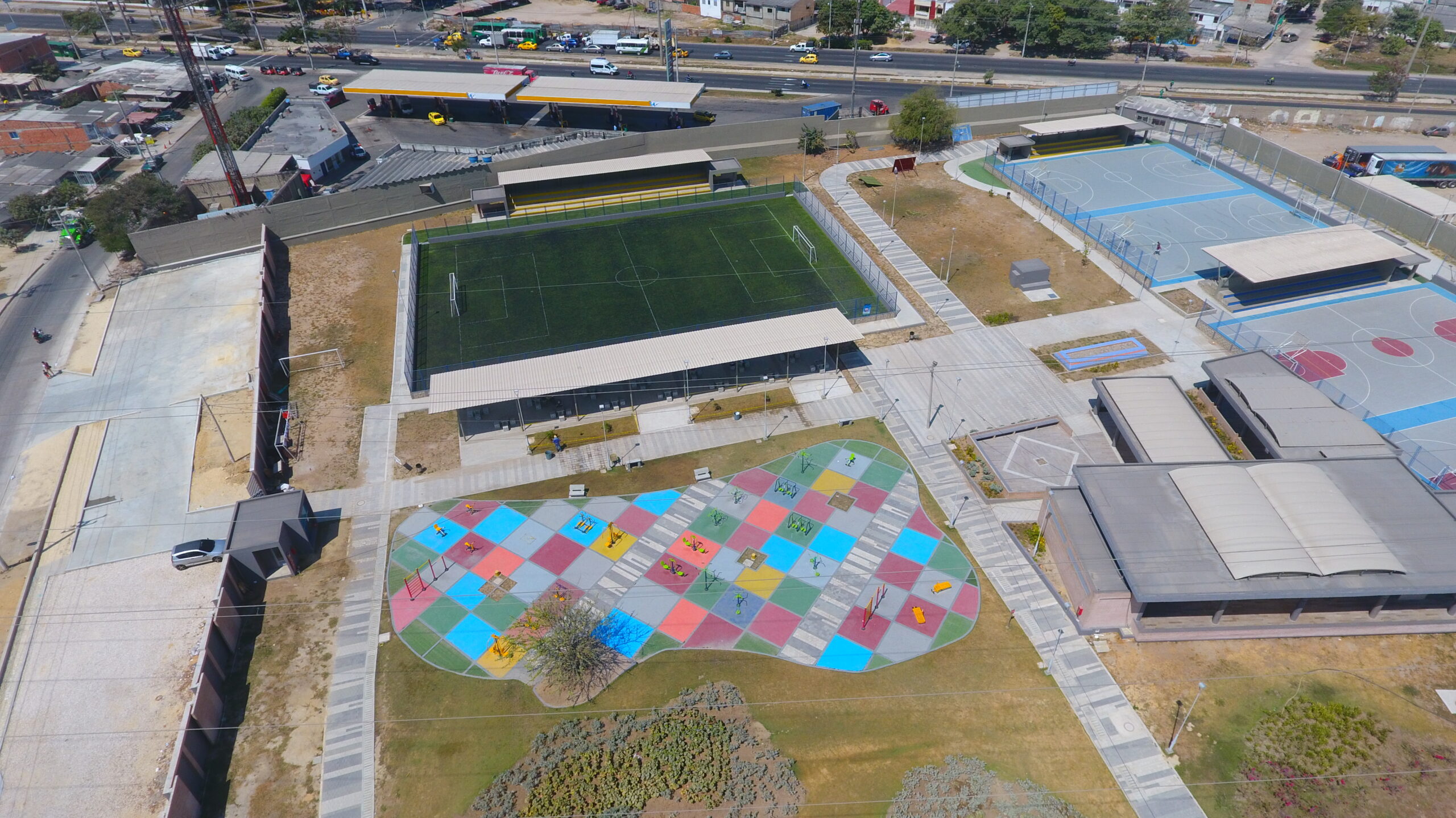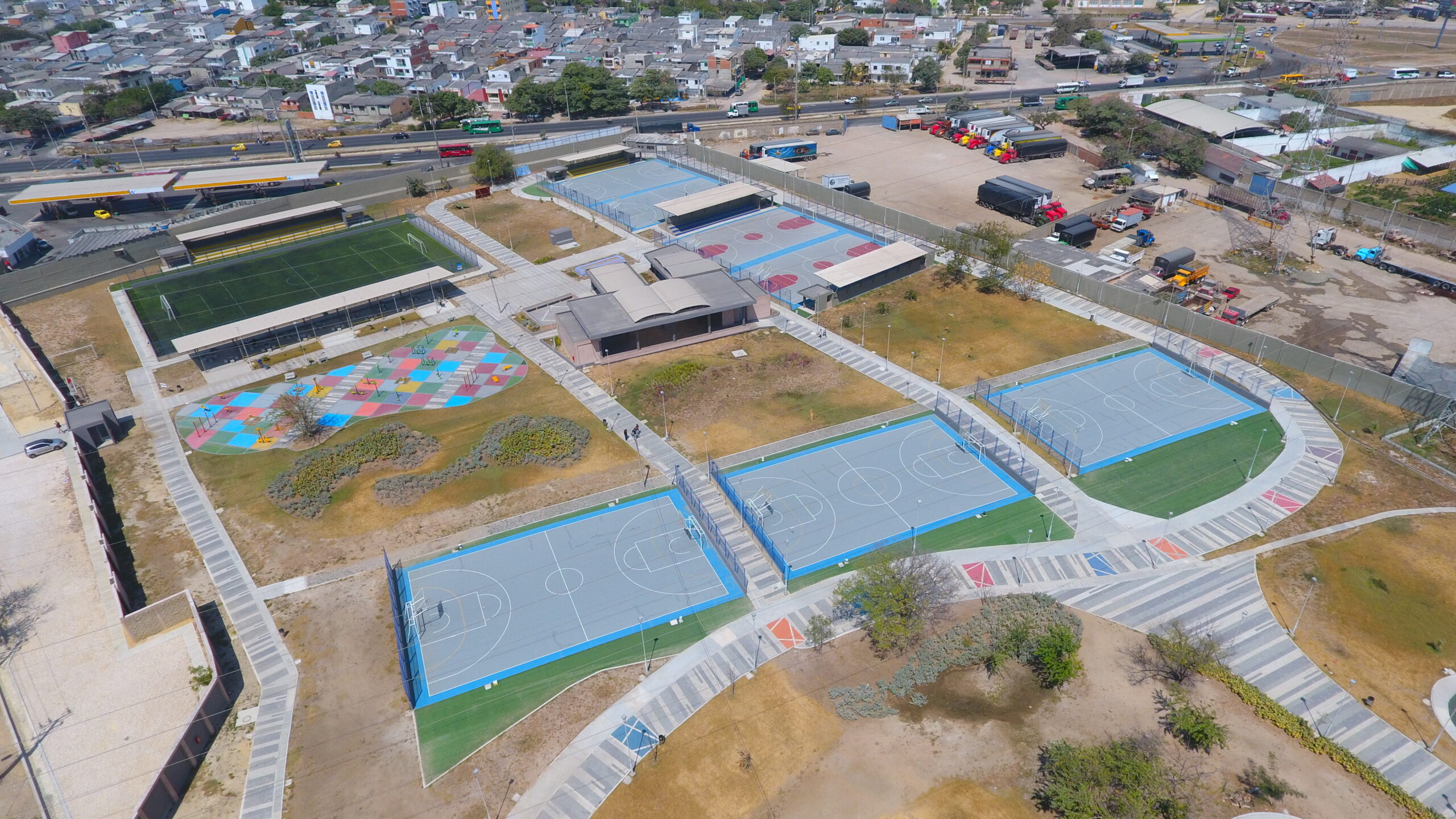 El Parque Muvdi, un ícono recreativo de Soledad, Atlántico, se renueva con estilo y seguridad. En este proyecto nos encargamos de darle vida a la diversión, suministrando e instalando juegos infantiles de nuestra línea premium, importados desde EE. UU., diseñados para resistir el movimiento constante y las risas interminables de un parque público tan visitado. Además, incluimos superficies especializadas para las áreas de juego, pensadas para brindar seguridad en cada salto y alegría en cada caída. ¡Un espacio que promete diversión sin límites para todos los pequeños aventureros!